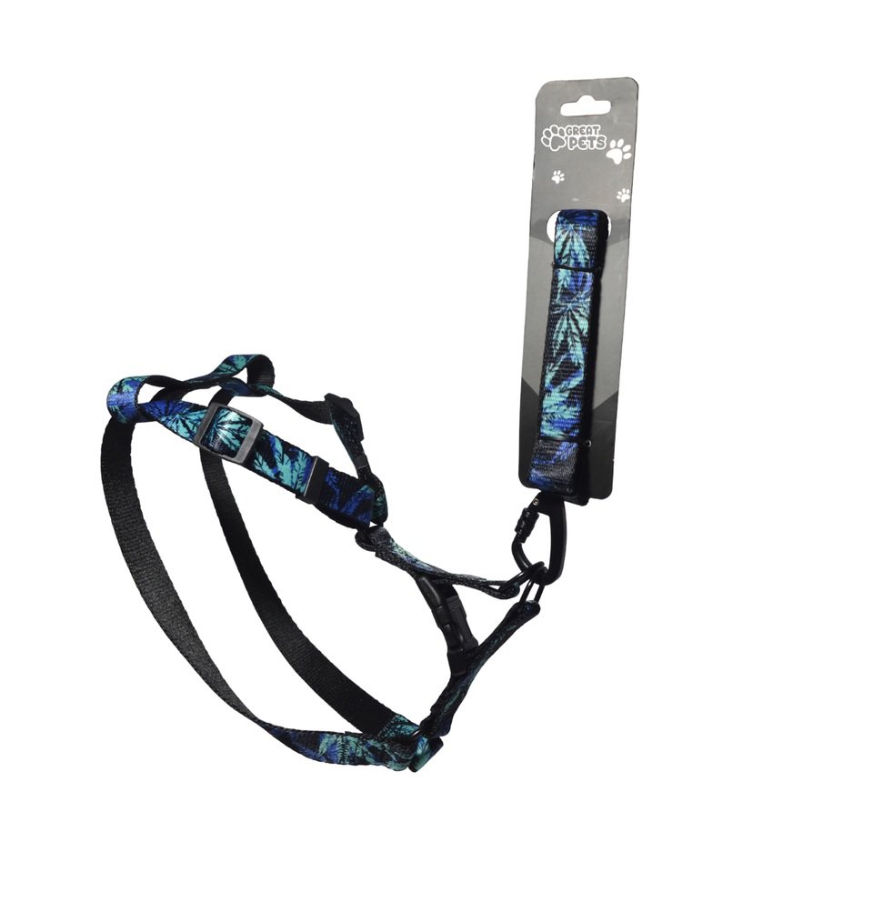 Peitoral com guia para Cães Tamanho M Azul/Plantas