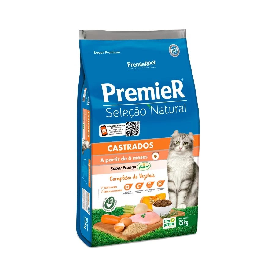 Farinha de vísceras de frango – Korin, proteína isolada de soja, proteína isolada de suíno, ovo desidratado – proveniente de galinhas livres de gaiolas (0,5%), glúten de milho – não transgênico, quirera de arroz, gordura de frango, óleo de peixe, complexo de vegetais – 7,0% (abóbora, alecrim, cenoura, extrato de Marigold, polpa de beterraba branca, quinoa), aveia, farinha de mandioca branca, aditivo acidificante, antioxidantes BHA e BHT (0,012%), bentonita, beta glucano, cloreto de potássio, DL-metionina, hexametafosfato de sódio, extrato de yucca (0,06%), hidrolisado de suíno e frango, levedura autolisada de cana-de-açúcar, L-carnitina, mananoligossacarídeos, taurina, vitamina A, vitamina B12, vitamina C, vitamina D3, vitamina E, vitamina K3, ácido fólico, ácido pantotênico, biotina, cloreto de colina, niacina, piridoxina, riboflavina, tiamina, cobre aminoácido quelato, ferro aminoácido quelato, iodeto de potássio, manganês aminoácido quelato, selênio metionina, sulfato de cobre, sulfato de ferro, sulfato de manganês, sulfato de zinco, zinco aminoácido quelato.