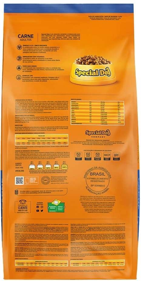 Farinha de vísceras de frango, farinha de carne e ossos, milho integral moído*, sorgo integral moído, farelo de soja*, farelo de trigo, gordura de frango, óleo de peixe, farelo de arroz, casca de aveia, hidrolisado de fígado de frango e suíno, cloreto de sódio (sal comum), vitamina A, vitamina D3, vitamina E, vitamina K3, vitamina B1, vitamina B2, vitamina B6, vitamina B12, vitamina C, niacina, cloreto de colina, ácido pantotênico, ácido fólico, biotina, iodato de cálcio, sulfato de cobre, sulfato de ferro, levedura enriquecida com selênio, proteinato de manganês, proteinato de zinco, propionato de cálcio, sorbato de potássio, parede celular de levedura, acidificante, antioxidantes (BHA e BHT). *Agrobacterium tumefaciens, Bacillus thuringiensis, Streptomyces viridochromogenes.